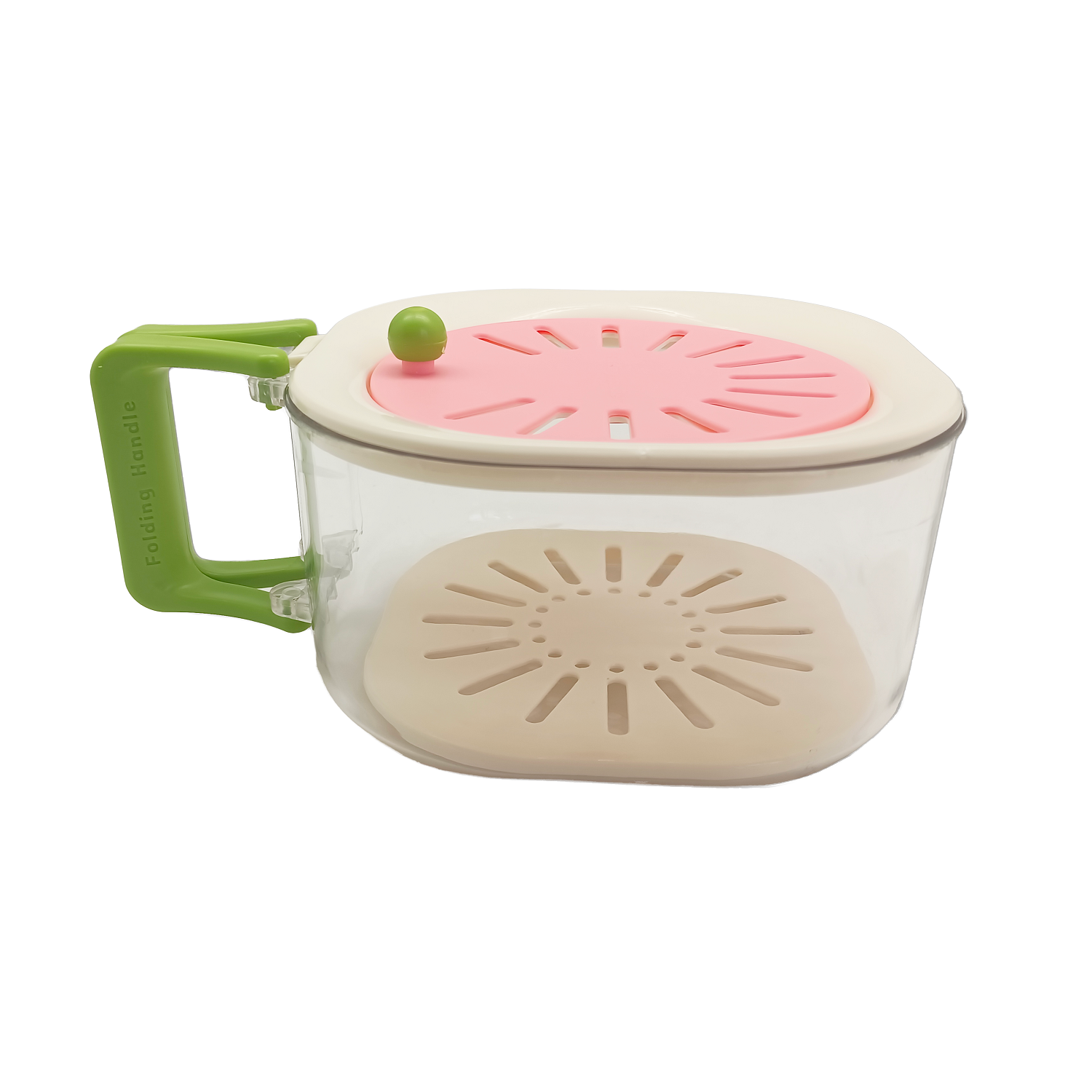 Food-grade plastic material, with a built-in handle, and a drainage hole design on the lid.